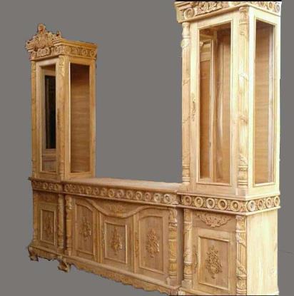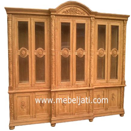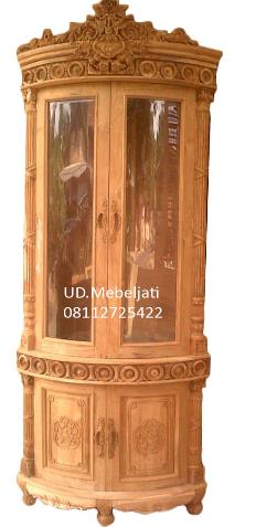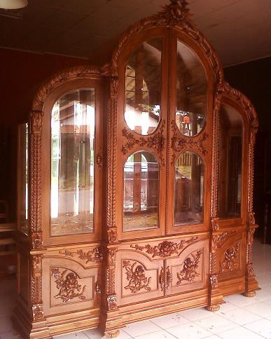 Bufet Manohara lengkung Ukuran 250x60x230 cm Finishing : Natural jati Harga Rp 9.000.000