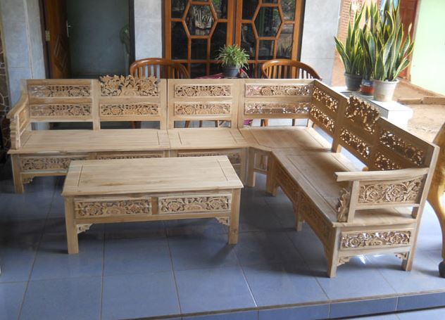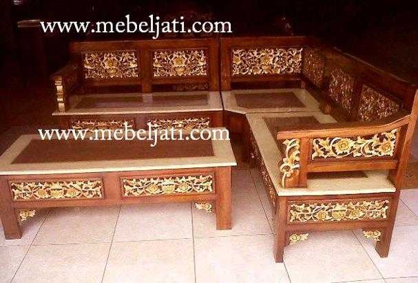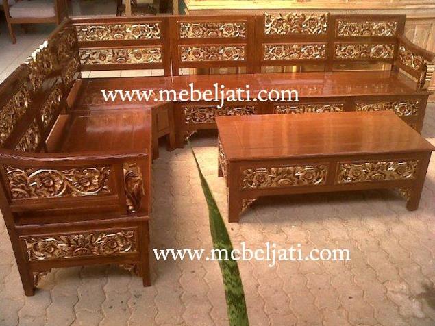 KURSI SUDUT MAWAR FINISHING NATURAL JATI VARIASI EMAS |